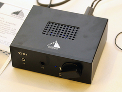 YJ-01は、クラスAアンプを内蔵する据え置きタイプ。外部からは見えないが、内部に真空管を搭載している。端子は、アナログ入出力のほかにプリアウトも装備する。周波数特性は20Hz〜20kHz、SN比は105dB、最大出力は16〜300Ωに対応する。インピーダンスは100kΩで、ゲインは10dB。クロストークは65dB/1kHz。