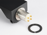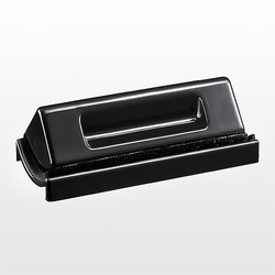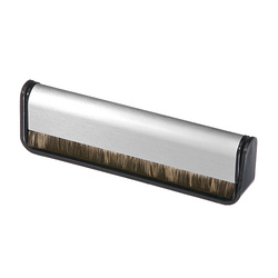 ホコリや静電気を除去でき、除電効果もあるカーボンブラシのクリーナー「200-CD020」(税込1,880円)は、レコードに帯電している静電気がカーボンブラシからシルバーの筐体を通り、手を伝わって除電。クリーニング後は帯電防止機能を施し、レコードにホコリを吸い付けにくくするとのこと。使用しないときはハンドル部分が回転し、毛の部分を覆うように収納できる。