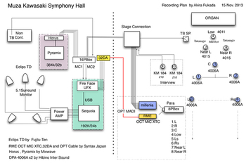 今回はマイクの出力を分岐して、Pyramix(384kHz/32bit)とSequoia(192kHz/24bit)の2つで録音を行った。