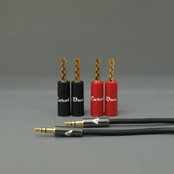 付属するAvinity製3.5mmステレオラインケーブルの長さは40cmで、そのほか前述のロゴ入りバナナプラグに加えて電源アダプターと40cmのLANケーブルが付属する。