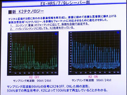 「EX-N70」(関連ニュース)などにも採用されたデジタルアンプ・New「DEUS」と、独自のデジタル高音質化技術であるNew「K2テクノロジー」を3モデル全てに搭載。「K2テクノロジー」では、音楽コンテンツのフォーマットに応じて、自動的に最適な “ビット拡張”、“帯域拡張”、“波形補正”の処理を行うことで、CDなどの音源も「スタジオマスタークオリティに近づける」としている。