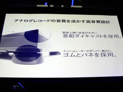 同社プロSV事業部 企画部 部長の梶ヶ谷 尚氏は、同社にとって今回の製品が、1984年に発売した「PL-7L」以来30年ぶりの“本格的ターンテーブル”であると紹介。「過去のPLシリーズに携わったOBたちにも今回の製品の開発に携わってもらった。これにより、過去のノウハウを活かした製品開発が行えた」と述べた。