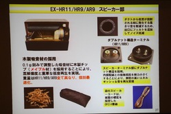 スピーカーユニットのセンターキャップの形状も、EX-HR9にならって変更。凸量を増やすことで、聴感上で広がりある抜けの良い高域再生を実現した。また、これまでクラフト紙を用いれたボビン素材を、木を薄さ80μmに削りだしたウッドシート(カバ)に変更。従来に比べて圧縮強度が高まったことで、より透明感のあるサウンドが再現可能になった。こちらもEX-HR9で先行して採用されていた技術だ。