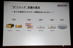 PMA-SX1は、従来のデノンの旗艦プリメインアンプ「PMA-SX」(関連ニュース)の登場から6年を経て登場する。米田氏は発表会冒頭で、PMA-SX1を語るためにはデノンのフラグシップの系譜である「Sシリーズ」の歴史を振り返る必要があるとして、最初のモデルとなった1993年登場の「S1シリーズ」はHi-Fiの歴史における革命的な製品だったと紹介。今回のPMA-SX1に至るSシリーズの基幹となる技術が、このS1シリーズのプリメインアンプ「PMA-S1」、プリアンプ「PRM-S1」、パワーアンプ「POA-S1」で開発されたのだという。
