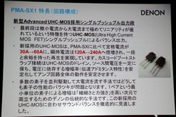 米田氏は「デノンのSシリーズは“S1シリーズ”からスタートしましたが、その時点からアンプの心臓部となるのはUHC-MOSでした。PMA-SX1でもUHC-MOSをキーとして、さらにパワーを充実させると共に、空間再現の向上を狙いました。従来のPMA-SXより価格を下げながら、とにかくその性能を抜いてやろうと、開発陣は努力したのです」とコメントしていた。