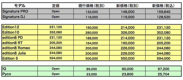 タイムロードは、同社が取り扱うULTRASONE製品を11月1日から価格改定すると発表した。ULTRASONEによるグローバルプライシング戦略の一環に沿う形で、日本国内における一部モデルの販売価格を値上げすることを決定したという。該当製品と現行価格→新価格は以下の通り。