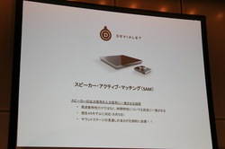 仏DEVIALETの各モデルについては、今年5月から追加された新機能「SAM(スピーカーアクティブマッチング)」について紹介。これはスピーカーの出力信号を入力信号に一致させる技術で、周波数特性だけでなく時間特性も完全に一致させるとのこと。各スピーカーを本社で測定しての対応となるが、9月5日時点で45機種のスピーカーに対応し、その中にはVIVID Audioの「GIYA G3」や「GIYA G4」も含まれるとのこと。「発表時点では対応が3機種だったことを考えると、同社が非常に力をいれてアップデートを行っていることがわかる」と橋隅社長は説明していた。