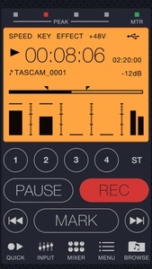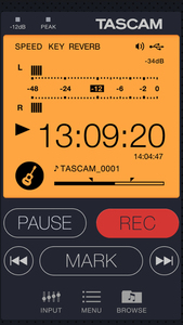 専用アプリ「TASCAM DR CONTROL」を使って、WiFi経由でスマートフォンから操作できるのは、録音の再生・停止に加えて、入力レベルやフィルターの設定、録音フォーマットの変更など、ほぼ全ての機能に及ぶ。簡単に設定を変えると問題のある一部機能のみ、本体から操作を行う必要があるとのことだ。