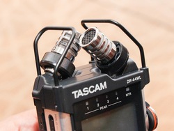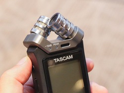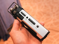 また、TASCAMならではの強みとして録音音質にもこだわったとのことで、上位モデルのDR-44WLを例に、その音質対策も紹介された。本機はX-Y方式単一指向性ステレオコンデンサーマイクを搭載。マイクの設置部には、振動を吸収してノイズを低減するショックマウント機構を備える。専用のマイクケースも音響仕様を採用したという。