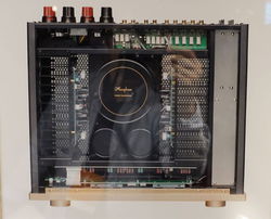 プリアンプ部にはさらに性能を高めた最新のAAVA方式ボリュームコントロールを採用。またパワーアンプ部は帰還インピーダンスを下げ、低雑音化した最新のMCS+回路やカレントフィードバック増幅回路を搭載。出力回路を低インピーダンス化してダンピングファクター500を実現した。またMOSFETスイッチによる細回路も搭載した。