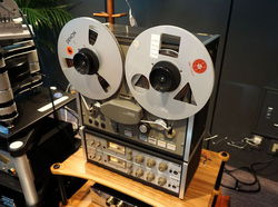 ブースに入ってまず目を引くのは、DENON(デンオン)のオープンリールデッキ「DH-610S」。実際にこのデッキを使ってのデモも行われていた。最近アナログオーディオが見直されており、アナログターンテーブルをソース機器として置く代理店やメーカーは多いが、オープンリールデッキは国内ではまだ珍しい。
