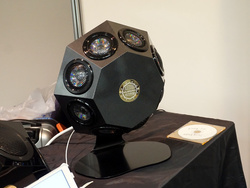 WARPSOUN(ラプソン)は、エヌエスイー(NSE)によるブランド。八角錐の頂点をカットしたような形状のエンクロージャーに8個のユニットを搭載し、この1基でステレオ再生と同じステレオ感を得られるという独特なスピーカー「Reference8」を展示している。