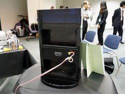 クボテック(HANIWA REAL 3D AUDIO)は、キューブ型スピーカー「HSP1C04」やデジタルコントロールアンプ「HDCA01」(関連ニュース)などを用いてのデモを実施。同社が「リアル3Dオーディオ」として訴求する世界を来場者が体感できるようにしている。