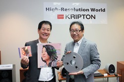 17日に同ブースで開催されたイベントには、シンコーミュージックの取締役・著作権部長である吉田聡志氏や、上記作品のデジタルリマスタリングを手がけたJVCマスタリングセンターの杉本一家氏も登場。クリプトンの渡邉勝氏と共に、アナログマスターをハイレゾ化して配信する魅力について解説していた。