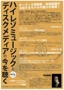10月25日と26日の2日間にわたって東京・中野サンプラザで開催される「秋のヘッドホン祭 2014」にて、オーディオ評論家の角田郁雄氏が「ハイレゾミュージックとディスクメディアの今を聴く」と題したオーディオ試聴イベントを行う。