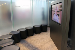 パナソニックセンター東京の入口を入り、すぐ正面にある黒い“小屋”のようなブース。これが「Technicsリスニングルーム」だ。リファレンスシステム/プレミアムシステムの試聴のほか、Technicsのコンセプトや歴史に関する展示も行っている。