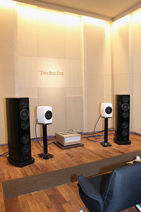 試聴室の広さは横幅5m、奥行き6m、高さ4m。Technics創始者のひとりでもある石井伸一郎氏の研究による「石井式リスニングルーム」設計理論をさらに推し進めた、“新石井式"設計としているとのこと。ゆったりとした空間は「スピーカーと壁との距離もとれるので、奥行き感などの表現にも優れる」(井谷氏)という。