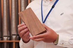 AH-MMシリーズにおいてデザイナーが特にこだわったポイントのひとつは、“手にしたときの素材感を大切にする”こと。ヘッドホンのハンガー部には通常はプラスチックを用いることが多いが、AH-MMシリーズ3機種ではアルミアロイダイキャストを使用した。AH-MM400はイヤーカップにアメリカンウォールナットの木材を採用。材質が堅いため加工が難しいが、木目が美しく音質にも優れるために採用を決めたという。この木材は寸法的な狂いも少なく、高級家具やピアノなどの楽器にも使われている。