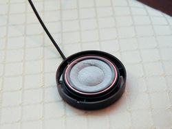 AH-MM400とAH-MM300のドライバーユニットには、40mm径のフリーエッジドライバーが採用されている。フリーエッジ・ドライバーは、一般的なヘッドホンの振動板と異なり、ダイナミック型スピーカーとほぼ同じユニット構造を取っている(下の写真を見ると、そのちがいがよくわかる)。振動板の素材には、一般的なヘッドホンがPETを用いているのに対して、本機はカーボンとペーパーの合成素材を用いている。ちなみにフリーエッジ・ドライバーは、同社のヘッドホンの旗艦モデル「AH-D7100」や「AH-D600」でも採用されている。他社での採用例はきわめて少ないという。