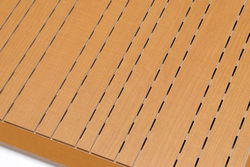 同社がスクエアシリーズで培った拡散・吸音技術を応用し開発した床用の音響パネル。フローリングによる音の反射やカーペットによる過度な吸音、天井との平行面によるフラッターエコーの影響を低減する。
