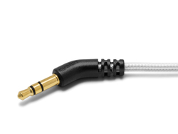 3.5mmステレオミニ端子部は、プレーヤーとの接触を防ぐためにプラグの根元から7mmほどを垂直に立ち上げ、さらに端子部の根本を湾曲させたカーブドミニプラグを採用することで、しなりと追随性によりプラグへの負荷を軽減し、断線を防止している。