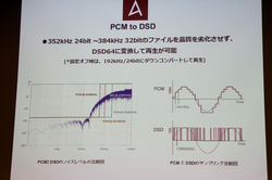 また、PCMファイルをリアルタイムで2.8MHz DSDに変換して再生することもできる。384kHz/32bit・24bitのPCM(DXD)については、品質劣化なく2.8MHz DSDに変換することができる。PCM再生時のDSD変換はオン/オフが可能だ。
