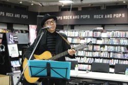 レコード試聴会のあとは、あがた森魚さんの弾き語りライヴが行われた。最新アルバム『浦島64』からBellwood時代の曲まで、情念を込めて歌い上げてくれた。