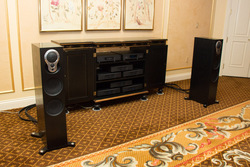 同社はベネチアンのスイートルームに2通りのシステムを展開。ひとつは昨年9月に日本でも発表された最新のEXAKTスピーカーシステム「EXAKT AKUDORIK」(関連ニュース)。もうひとつはEXAKTチャンネルデバイダー「AKURATE EXAKTBOX」と10ch分のパワーアンプを組み合わせて同社のパッシブタイプのスピーカーを駆動するシステムだ。当日はLINNのギラード・ティーフェンブルン社長自ら、出展内容やKAZOO Serverの最新機能を紹介してくれた。