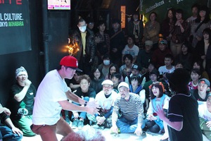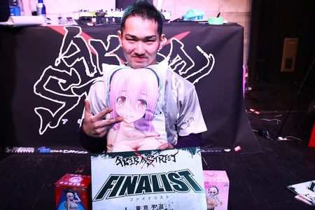 前段が長くなったが、去る1月17日、「アキバ×ストリート」の嚆矢となる初戦が東京は秋葉原、「moefarre」にて開催された。エントリー人数は80名弱。予選からして人数が多いためいくつかのグループに分けられ、そこを勝ち抜いた各2名、そして敗者復活戦にて選ばれた2名の計16名により、ソロバトルのトーナメントが行われるシステムとなった。