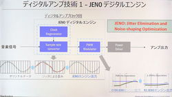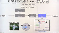 具体的には、ジッターを抑制する『JENO デジタルエンジン』や、通常は産業用に用いられ、これまでオーディオ製品への採用例はほぼ無いという、窒化ガリウム(GaN)採用のFETを実用化したことなどをアピールしました。