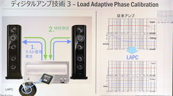 そのほか、ゲインだけでなく位相特性も正確に揃える独自技術「Load Adaptive Phase Calibration(LAPC)」、ネットワークプレーヤーに搭載された数々の高級オーディオパーツなども紹介。通常のNFBなどに対する優位性をくわしく語りました。
