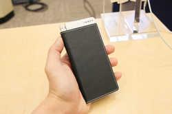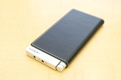 HA-2はUSB-DACを内蔵したポータブルヘッドホンアンプ。薄型ボディを採用し、本体両面にはブックカバーのようにレザーを配置。モバイル機器への充電機能を備えたことも特徴だ。USB-micro B端子経由でパソコンおよびUSB-OTG機能付きスマートフォンと接続できることに加え、USB-A端子から同梱のLightningケーブルを使ってのiOSデバイス直接接続にも対応する。