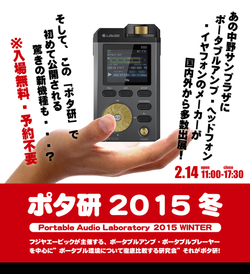 フジヤエービックが主催するポータブルオーディオ&ヘッドホン/イヤホンの展示会「ポータブルオーディオ研究会 2015冬(通称:ポタ研)」が、明日2月14日(土)に開催される。場所は中野サンプラザ 14・15階で、時間は11:00〜17:30。