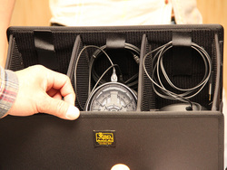ヘッドホンのキャリングケースとして最適化したという「ヘッドフォン専用キャリングケース/ソフトタイプ」は、今月発売開始したばかりの製品。ヘッドバンド部を下向きにした状態でヘッドホンを中に入れて、ケーブルをフロントのポケットに収納できるようにしている。内部にもポケットを備えており、ケーブルを収納したり、DAPを入れておくことができる。