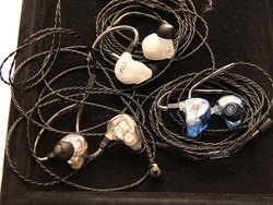 茶音楽人のブースでは、同社イヤホンの従来モデル各種のほか、「Donguri-鐘」および音茶楽ブランドの「Flat4-楓弐型」のバランス接続モデルを参考出展していた。バランス接続モデルは2機種とも試作機で、製品化は未定とのこと。いずれも、端子形状が2.5mm 4極であるほかは、既存モデルと同じ仕様となる。