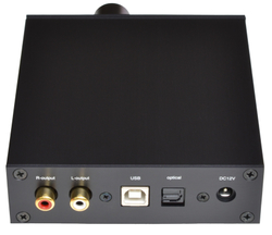 入力は光デジタル1系統、USB1系統。出力はヘッドホン1系統、ライン1系統。