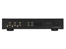 入力感度はMMが4mV、MCがhigh:0.44mV/low:0.18mV。入力インピーダンスはMMが30kΩ〜100kΩ(可変)、MCがhigh:40Ω/low:2.5Ωとなる。定格出力は250mVで、出力インピーダンスは850Ω。