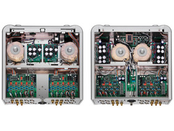 内部は、電源部から左右チャンネルを独立した完全デュアルモノ設計で、チャンネル間の相互干渉を抑えている。さらに左右チャンネルそれぞれに専用の電源トランスを使用しており、電源ラインを経由したノイズの混入も抑えられるようにした。また、電源回路パターンの細部もGrandiosoシリーズの技術を取り入れることでブラッシュアップしたという。