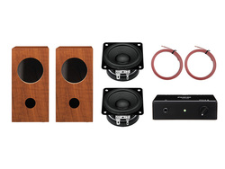 6.5cm口径のフルレンジユニット「P650K」と、スピーカーボックス「P650-E」、パーソナルアンプ「AP05」をパッケージにした製品。約1.5mの高級スピーカーケーブルも同梱する。