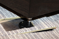 ウーファーとミッドレンジの向きを90度変えることで、各ユニットの駆動力による相互作用を低減。ウーファーブロック天面に無垢の鋼鉄製スペーサーを置き、その上に4点支持でミッドレンジブロックを設置。トゥイーターブロックは、全体が前後に稼働するフローティング構造となっている。