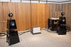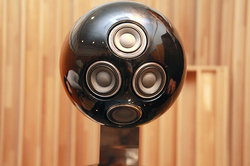 トゥイーターブロックは、木製の球形キャビネットに4基のユニットを搭載。4基は2.7kgの鋼鉄製ベースにダイレクトに取り付け、メカニカル1点アースとすることで、振動板動作の完全同位相化を実現しているという。
