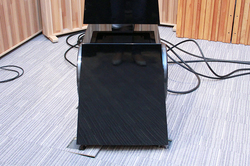 ウーファーブロックには帯域分割されたのち内蔵パワーアンプにXLRバランス伝送。周波数特性補正は、内蔵パワーアンプ内のDSPで行う。