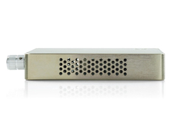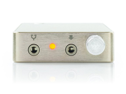 入出力端子に3.5mmステレオミニを1系統ずつ備えるのみという、シンプルな構成のアナログポタアン。本体は特注のアルミニウム筐体に、ニッケルコーティングを施した限定デザインとしている。本機を使い込みながら、筐体の色合いの変化を楽しむことも含めてデザインされたという。
