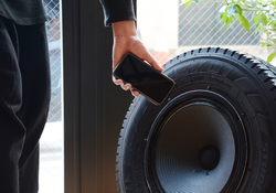 廃タイヤをそのまま使ったBluetoothスピーカー。タイヤの弾力で温かい音を実現
