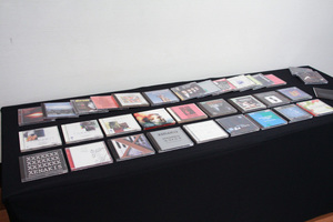 ギャラリー内には、実際に『IX』のレコーディングで使われた楽器も展示。クセナキスが今回収録された『プレイアデス』のために考案した楽器(そして録音のために製作された!)である「SIXXEN(ジクセン)」も見ることができた。また、パフォーマンス後のトークショウで司会を務めたリンジャパンの古川雅紀氏が個人所有する、クセナキスの膨大なレコードライブラリや関連資料も展示された。