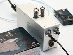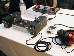 MARVALVEは、日本で未発表の真空管アンプ「Model One」を参考出展。ヘッドホン出力用に3.5mmステレオミニと6.3mm標準プラグを装備しており、インピーダンスは3.5mmステレオミニが16〜100Ω、6.3mm標準が300〜600Ωをサポートする。最大出力は20mW。詳細な時期や価格等は未定とのことだが、国内向けにもいずれ展開予定だという。