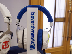 beyerdynamic製品では、ユーザーが好みにあわせてサウンドとデザインを変えることができる“セルフカスタマイズヘッドホン”「CUSTOM ONE PRO PLUS」について、本イベント主催者であるフジヤエービックのロゴを入れたモデルなどを展示。