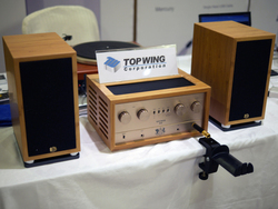 トップウイングブースでは、上海のオーディオブランドであるキングサウンドの静電型ヘッドホン「H-03」とヘッドホンアンプ「M-03」を参考出展。トップウイングで取り扱うのかもまだ決まっておらず、今回の来場者の反応を見て、今後取り扱いを始めるのか検討したいとのことだ。