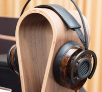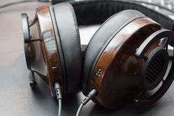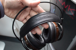 会場には、AudioQuest初のヘッドホン「NightHawk」の発売直前の最終仕様モデルも出展されていた。機構や音質面はこれまで出展されてきたモデルと同一だが、新たにヘッドバンドのレザーに「NightHawk」の文字が刻印され、リキッドウッドのイヤーカップにL/Rの文字が彫り込まれた。