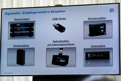 HighEndの会場にはバイエルン放送(BR)と放送技術研究所(IRT)が共同でブースを開設し、デジタルラジオの現状報告や他方式との音質比較、最新番組紹介など、多様なデモンストレーションを行った。HighEnd会場でのデジタルラジオの本格的な展示は今回が初めてということもあり、こちらの記事で紹介したDSDのブースに匹敵する注目を集めていた。ドイツ国内向けの放送で、講演やデモンストレーションもすべてドイツ語ということもあり、海外メディアなどの注目度はそれほど高くないのだが、DAB+のポテンシャルの高さは注目に値するものだと思う。一人の音楽ファンとして筆者自身も興味を惹かれた部分が多かったので、展示の概要を紹介することにしたい。